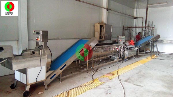 山東德州的YC公司是位于當(dāng)?shù)匾患掖笮屠苯芳庸ぎa(chǎn)業(yè)基地內(nèi),該辣椒城是一個(gè)集辣椒收購、儲(chǔ)存、加工、銷售、科研于一體的綜合性專業(yè)市場,擁有交易區(qū)、倉儲(chǔ)區(qū)、加工區(qū)、服務(wù)區(qū)等多功能區(qū),年成交量7.5億斤,成交額10億元,是山東省辣椒專業(yè)市場,也是江北大的辣椒深加工基地。YC公司在本公司非標(biāo)定制的這條生產(chǎn)線,從辣椒的解凍開始,經(jīng)我們的QX32氣泡洗菜機(jī)切割前清洗,后平面輸送到SH-165大型切菜機(jī)切割成段,然后用皮帶提升機(jī)提升到渦流洗菜機(jī)深度清洗,震動(dòng)瀝水除雜后再次輸送到SH-165大型切菜機(jī)進(jìn)行深度切碎,最后成品!客戶這個(gè)項(xiàng)目的開展,很好地解決了之前人工作業(yè),生產(chǎn)成本高的老大難問題,勢必能在其提高生產(chǎn)能力,節(jié)省生產(chǎn)經(jīng)營成本等方面起到作用。