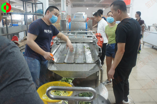 廣西客戶現(xiàn)場測試日前定購的蔬果加工清洗生產(chǎn)線.
