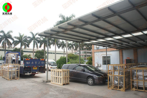 蘇州經(jīng)銷客戶訂制的大批蔬果加工設(shè)備裝車出貨.設(shè)備包括大批洗菜機,切菜機等!