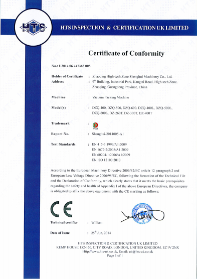 真空包裝機獲得CE認證
