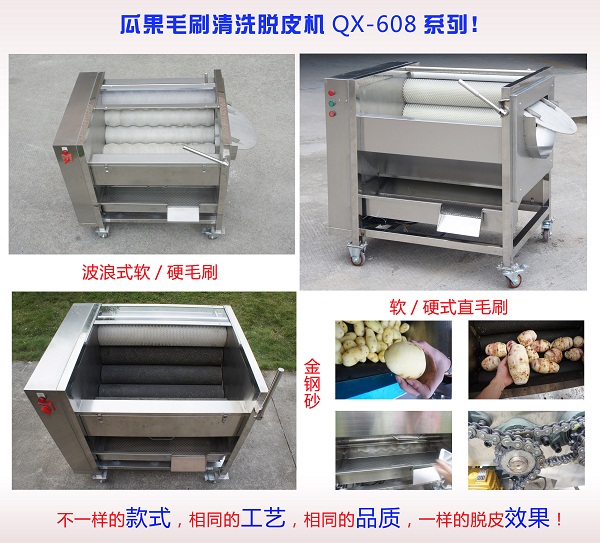 瓜果脫皮機(jī)/瓜果清洗脫皮機(jī)/瓜果毛刷清洗脫皮機(jī)QX-608新款(視頻)