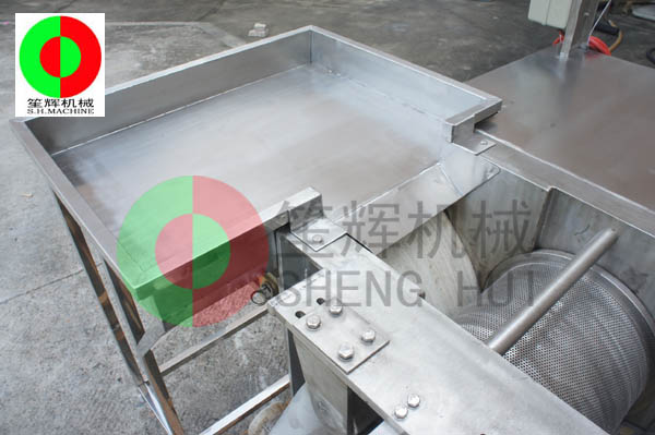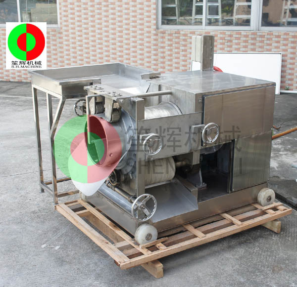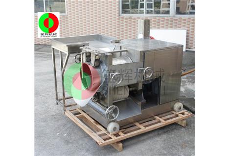 魚肉提取機的工作原理:人工把待加工的魚先去掉魚頭和取出魚肚中的內(nèi)臟;對大魚,則需將魚剖分成兩半,漂洗干凈(避免采出來的魚漿被內(nèi)臟及魚血污染)。隨后將魚片投入到料斗內(nèi)(魚的剖分面朝向采取筒,背部貼近橡膠帶),魚在橡膠帶的帶動下進入采取筒與橡膠帶的擠壓區(qū),在橡膠帶與采取筒之間的擠壓力的作用下,魚肉被擠壓通過采取筒上的小孔進入采取筒內(nèi),采取筒內(nèi)的魚肉碎粒會隨著旋轉(zhuǎn)自動送出。而魚皮及魚刺等雜物則被裝在機器上的刮刀從采取筒外延上刮下落在收集槽中。整個采肉分離過程無需人手操作,衛(wèi)*生。橡膠帶與采取筒之間的壓力大小,是由位于機器頭部的橡膠帶拉緊裝置調(diào)節(jié)。調(diào)節(jié)量的大小可根據(jù)魚種的大小靈活調(diào)整。提取出來的魚肉可作為魚丸、魚漿,魚醬,魚肉餅,魚餡餃等等食品原料,大大提高魚類經(jīng)濟價值。