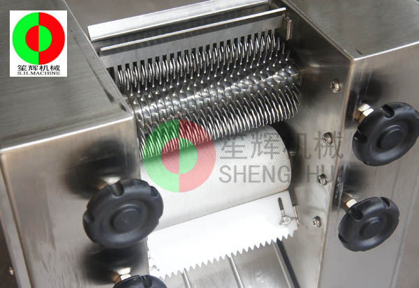 - 產(chǎn)品優(yōu)勢: 用途:用于豬肉,牛肉,羊肉片增大,松開肉筋,使肉片賣相好,口感好。機(jī)器原理:1.通過上層刀組,不銹鋼帶齒壓輪,帶齒設(shè)計,能有效放大肉片尺寸及松肉效果。2.通過下層刀組,斷筋部分,能刺穿肉片,增強(qiáng)嫩化及松肉效果。