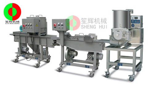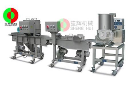 自動肉餅成型機生產(chǎn)線能自動完成肉餅成型,上漿,上粉,上面包屑等工序。通過更換 不同的模具能實現(xiàn)生產(chǎn)不同形狀的產(chǎn)品。整機采用不銹鋼材質(zhì)制造,耐磨耐用,符合衛(wèi)*生標準。適合制作漢堡肉餅、雞塊餅,魚餅,土豆餅,南瓜餅等等食品。生產(chǎn)線自動化程度高,操作簡單,清洗方便,性能穩(wěn)定,可靠,適合肉類加工廠,餐飲行業(yè),食品配送中心等單位使用。