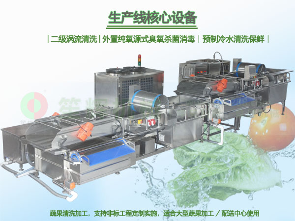 蔬果分選預(yù)制冷水清洗保鮮/臭氧水去農(nóng)殘清洗風(fēng)干生產(chǎn)線
